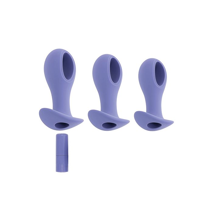 These oval-shaped hollow-center silicone plugs are flexible at the head and stem for easy entry with their unique ‘hole punch’ design. Powered by a robust vibrating bullet that tucks into each base seamlessly, choose from 3 sizes, each anchored by a wide safety base.