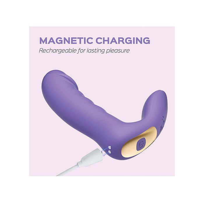 Elegant and erotic, this dual teaser features an deliberately ridged shaft with a vivid, penis-shaped head and a perfectly placed clitoral stimulator, ideal for both internal and external bliss. RORA’s head rotates, and its external arm vibrates, delivering synchronized G-spot and clit stimulation.