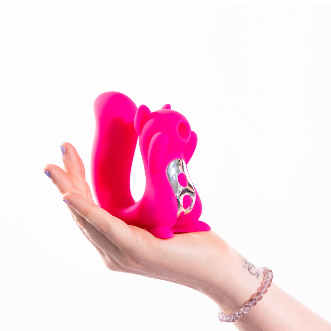 SCREAMING SQUIRREL is SSSS-CREAMIN’ for a good time! Let this mating call be a mind blowing experience you never knew was possible! This amazing creature will make you squirrelly in all the right ways! Screaming Squirrel is a multi-function toy with air pulse and vibration capabilities. The mouth of the squirrel fits perfectly around sensitive areas such as the clitoris or nipples. Insert the tail and enjoy the curved design as it hits your G-spot or P-Spot! Both motors are independently controlled for unlimited play options. The tail is flexible for superior comfort during use.